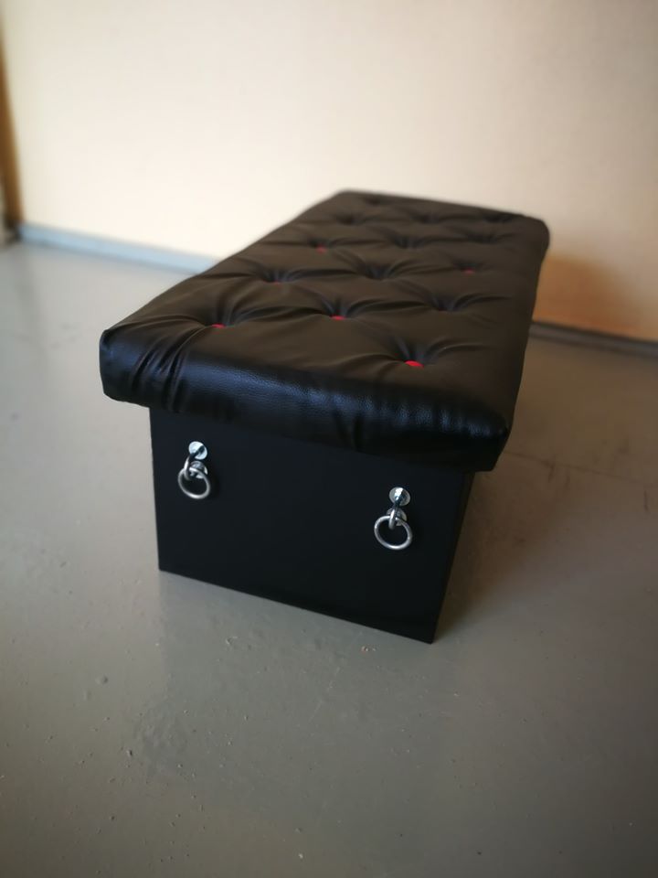 Leisure bench Accent in your bedroom. You can simply sit down or have indescribable intimate pleasure. For your convenience, it is possible to place the padded knee supports in two heights. The furniture has metal eyelets at both ends for arm and leg fixing. Made of 21mm thick plywood, surface made from leather imitation, but can be made from natural leather. The size and materials of the furniture can be customized to your wishes. |